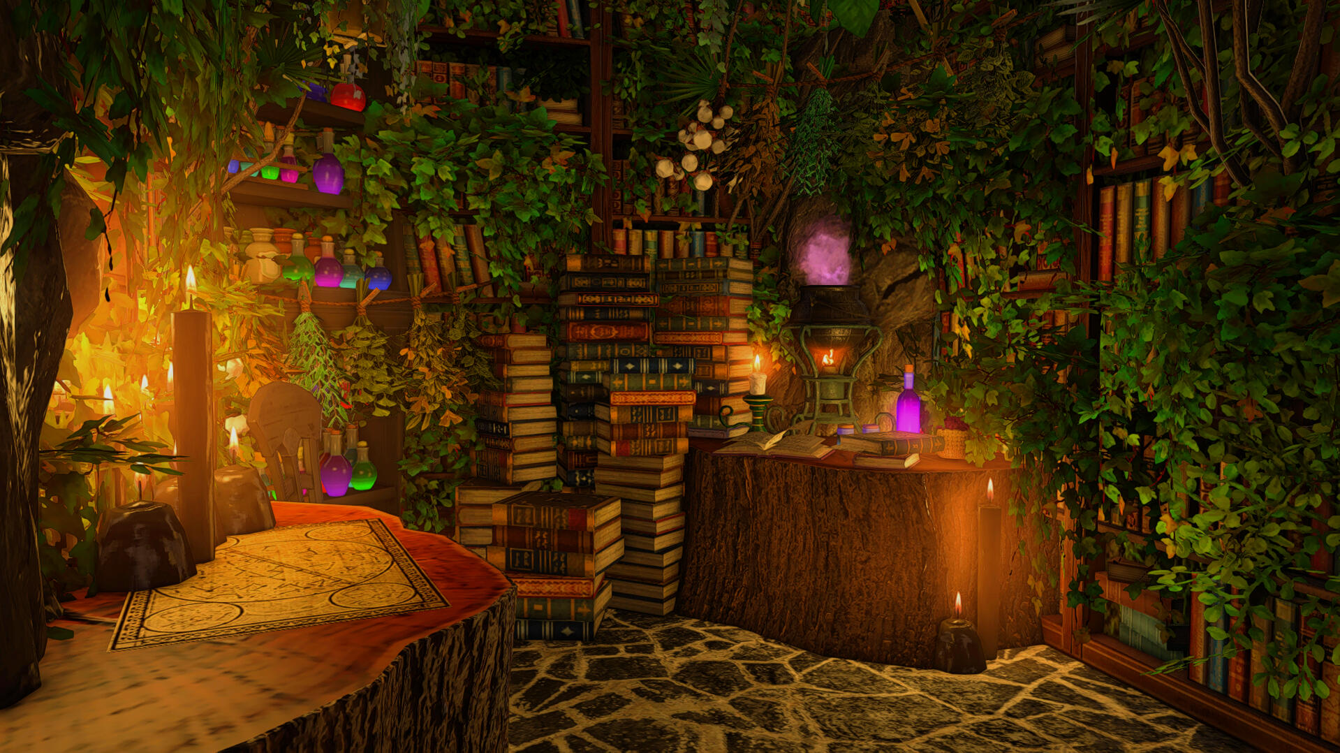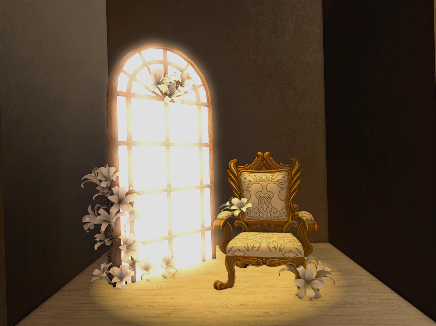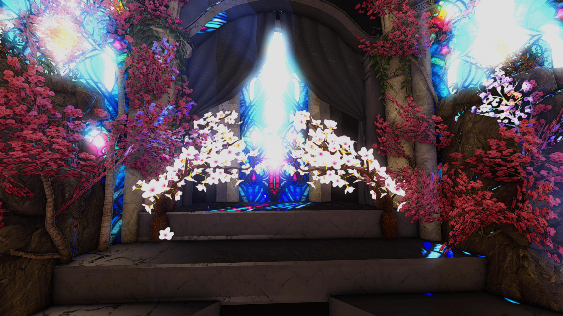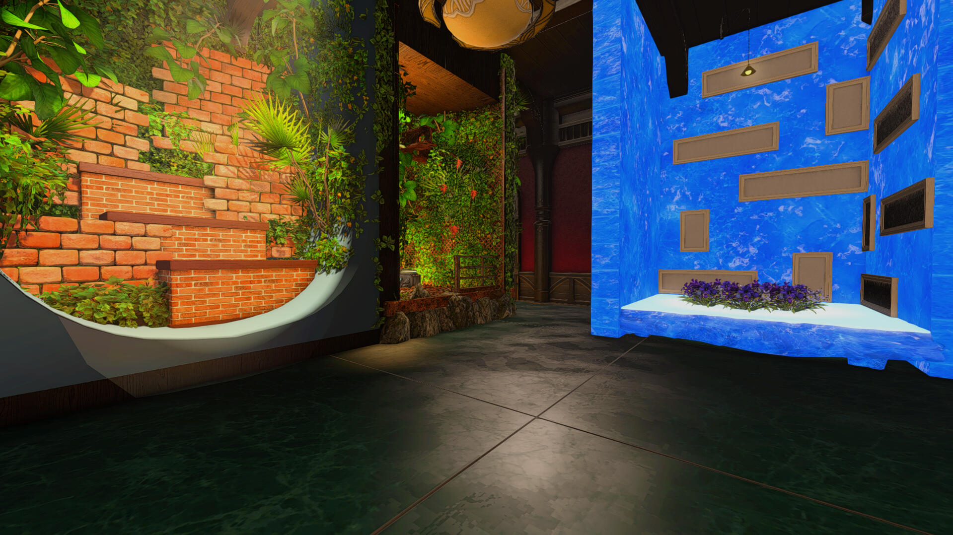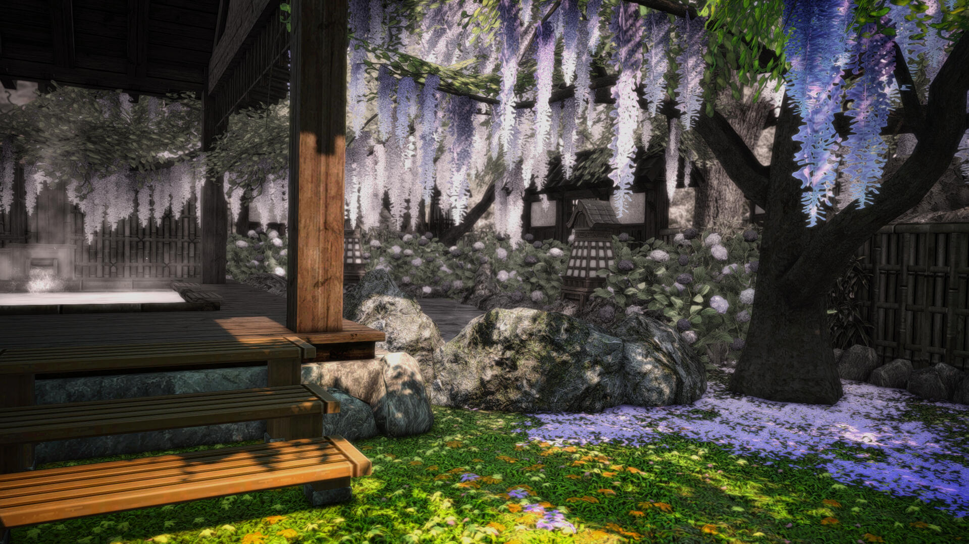 When you arrive its very obvious you made it to the right place by how beautiful the landscaping is - clearly meant for outdoor photography! Items like a rock pond, fountain, and sauna are available for use. Each shaded by a vibrant wisteria tree canopy. Ranging from foral bath scenes, marble archways, and even a set I'd personally describe as *"post-apocalyptic steampunk," the interior sets are all unique beautifully intricate. * Each set is placed for a limited amount of time, about a month, so be sure to check back often to make use of the new designs!