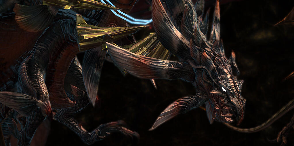 Imbued with a dark and sinister aether, this Nael was not the same presence as the one who's horrific reputation preceeded her. Instead, the being referred to herself as Nael deus Darnus...or Nael God Darnus. This divine Nael's body had terrifyingly familiar aspects, with some bits resembling none other than the elder wyrm himself. Equipped with large powerful wings, piercing red eyes, and a fortified scale body, she was the most formitable adversary we had ever encountered. In her claws she held a long lance with a keen edge, ready to bring an untimely end to any who were unfortunate enough to find themselves in this domain. "Bradamante," I whispered, recognizing the legendary weapon.
