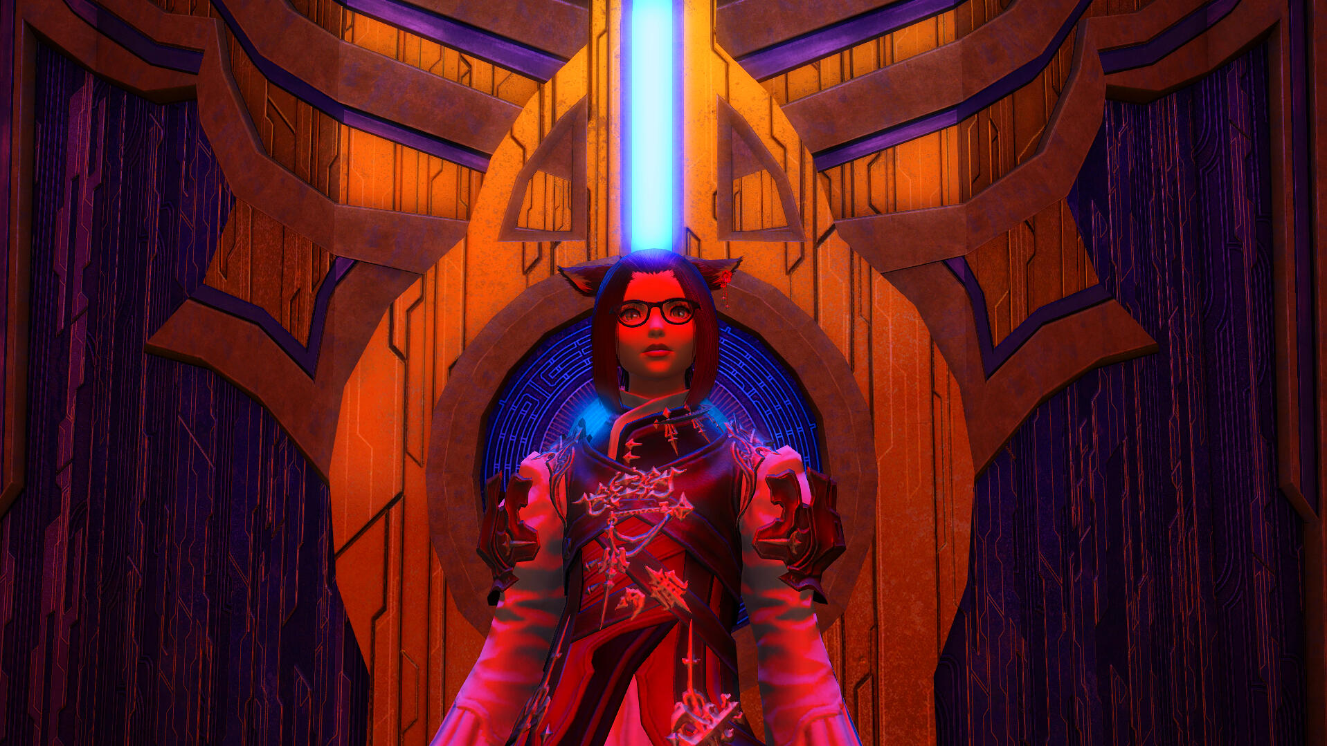 It had been two months since the battle with Nael at the Holocarts. Since his abduction, I had spent every waking moment in search of M.D.'s whereabouts. Endlessly scouring the halls of the Raganarok Core, I had hired dozens of mercenaries to help me reach this level. Finally, after fighting and clawing my way through countless incompetent mercenaries, lesser drakes, allagan corruptions, and even a revived pheonix, I had managed to find my way into the deepest chamber of Bahamut's Heart. I stopped at the bottom of the pathway when I reached a giant gated entry.