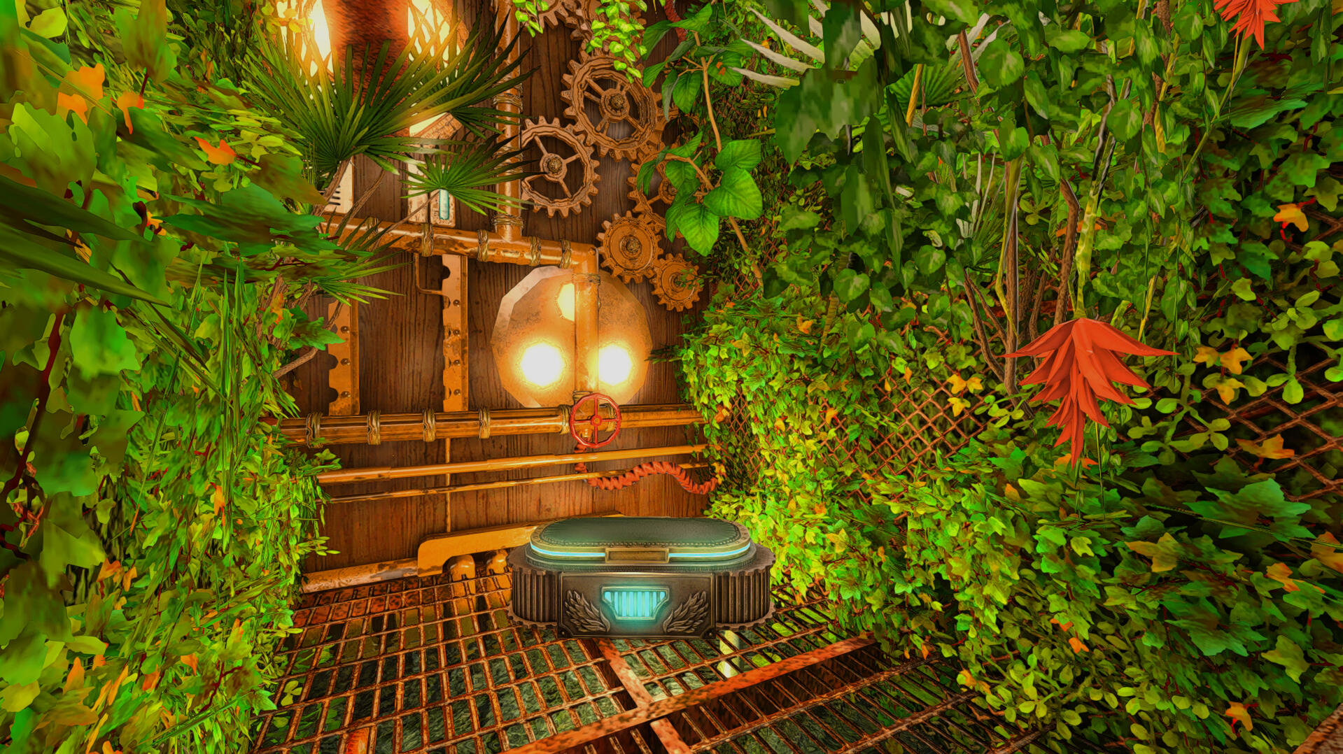 The contraption seemed tightly secured by a powerful aetheric force. The gateway was menacing. Even through an allagan tek wall as fortified as this, I could sense a dark and powerful aether from behind it. I wasn't feeling as brave as I let on...least not without M.D. there. I closed my eyes. "I know you're down here somewhere..." I whispered. I pressed by ear up against the cold metal of the entryway and listened. My party caught up a short while later, now rambling about what they wanted for supper. "Shhh," I hissed. "Listen." A faint but beautiful chorus hummed from behind the door. The melancholy notes of the chamber made me feel uneasy about what lied within.